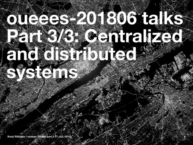 —Latency is zero —Bandwidth is infinite —The network is secure 3 https://blog.fogcreek.com/eight-fallacies-of-distributed-computing-tech-talk/ Kenji Rikitake / oueees 201806 part 3 17-JUL-2018 37
