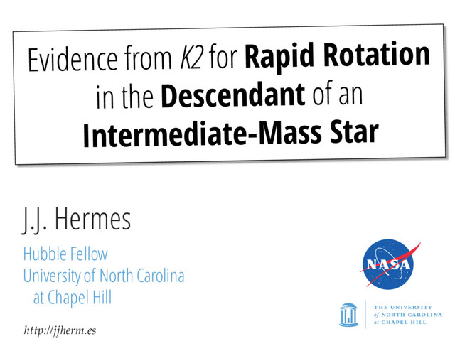 4 6 8 10 N Kepler & K2 Kawaler (2015) Kepler & K2 have doubled the number of white dwarfs with measured internal rotation periods using asteroseismology Hermes et al. 2017, in prep. None of the stars here are currently in binaries: Representative of single-star evolution Pulsation SplittingsReveal Rotation Rates 0.5 d 1 d 2 d 4 d