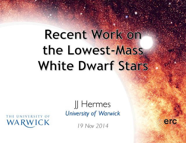 ApJ, 750, L28 Hermes et al. 2013, ApJ, 765, 102 Hermes et al. 2013, MNRAS, 436, 3573 Kilic et al. 2015, MNRAS, 446, 26 • CNO flashes erode the hydrogen layer mass of ELM WDs • An observational test would come from pulsating WDs: asteroseismology • Since October 2011 we discovered the first five pulsating low-mass,