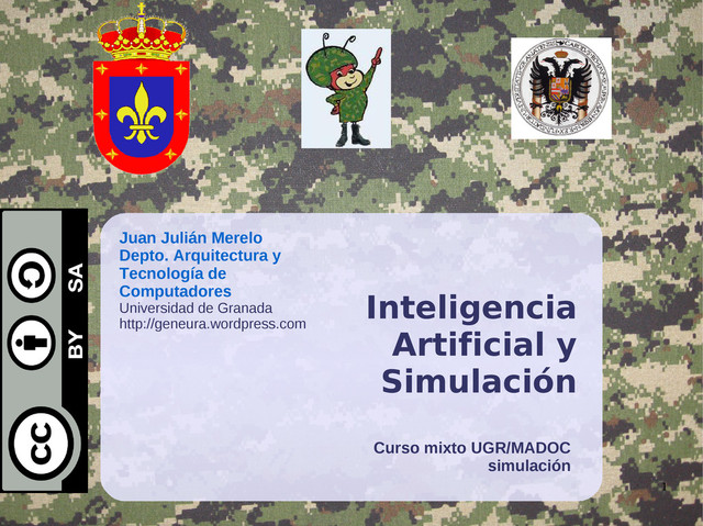 Universidad de Granada http://geneura.wordpress.com Curso mixto UGR/MADOC simulación Inteligencia Artificial y Simulación Esta presentación tiene licencia cretive commons cc- by-sa, salvo las imágenes que no tienen ningún tipo de licencia y que son propiedad de sus autores.