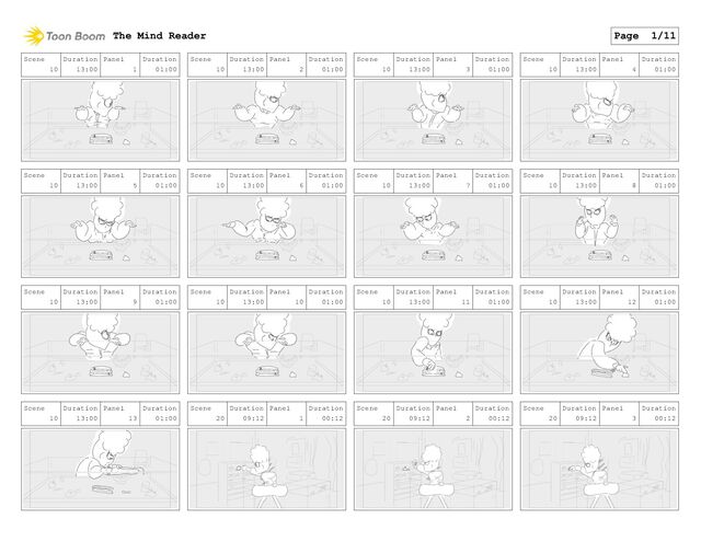 Duration 13:00 Panel 2 Duration 01:00 Scene 10 Duration 13:00 Panel 3 Duration 01:00 Scene 10 Duration 13:00 Panel 4 Duration 01:00 Scene 10 Duration 13:00 Panel 5 Duration 01:00 Scene 10 Duration 13:00 Panel 6 Duration 01:00 Scene 10 Duration 13:00 Panel 7 Duration 01:00 Scene 10 Duration 13:00 Panel 8 Duration 01:00 Scene 10 Duration 13:00 Panel 9 Duration 01:00 Scene 10 Duration 13:00 Panel 10 Duration 01:00 Scene 10 Duration 13:00 Panel 11 Duration 01:00 Scene 10 Duration 13:00 Panel 12 Duration 01:00 Scene 10 Duration 13:00 Panel 13 Duration 01:00 Scene 20 Duration 09:12 Panel 1 Duration 00:12 Scene 20 Duration 09:12 Panel 2 Duration 00:12 Scene 20 Duration 09:12 Panel 3 Duration 00:12 The Mind Reader Page 1/11