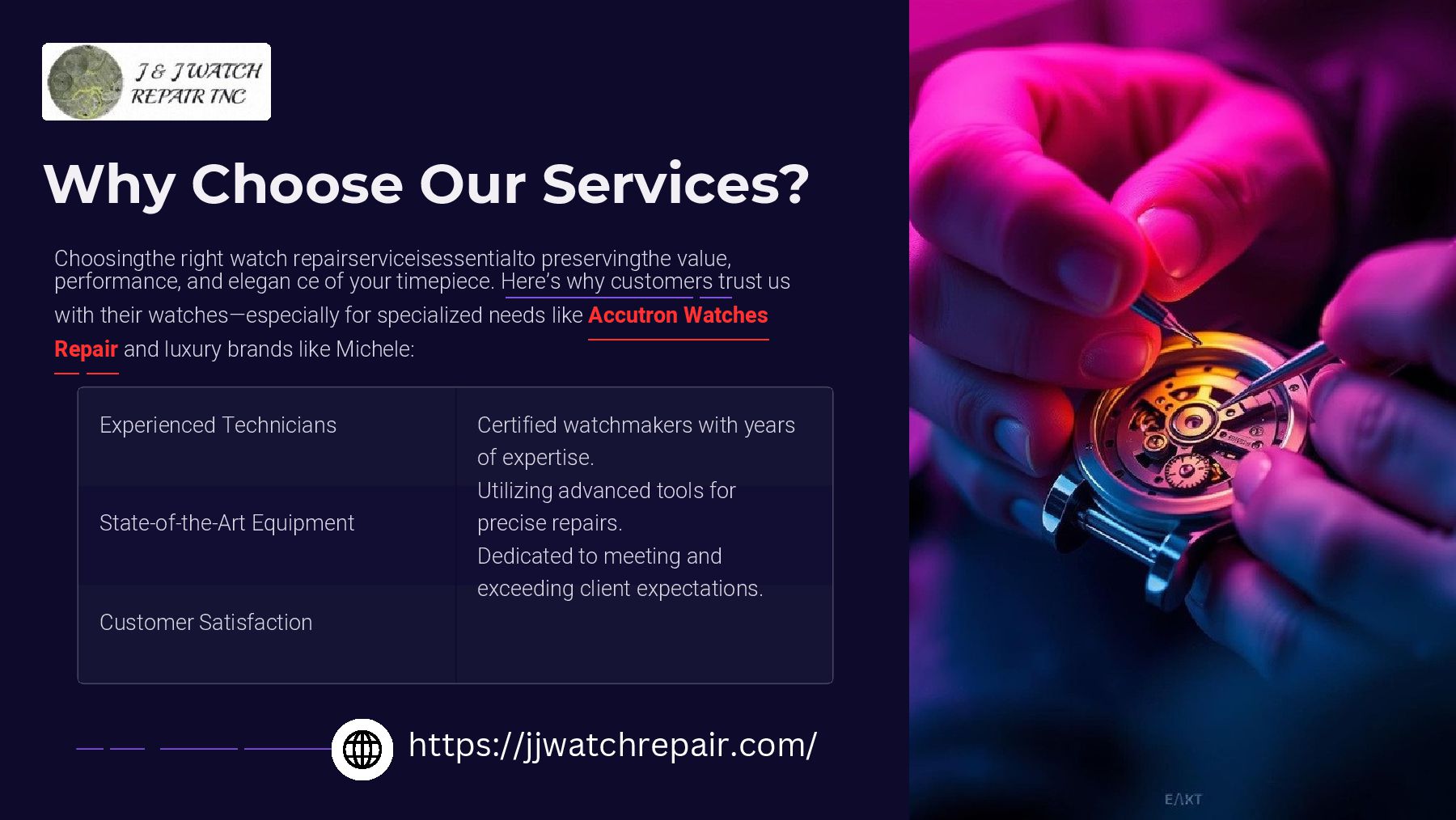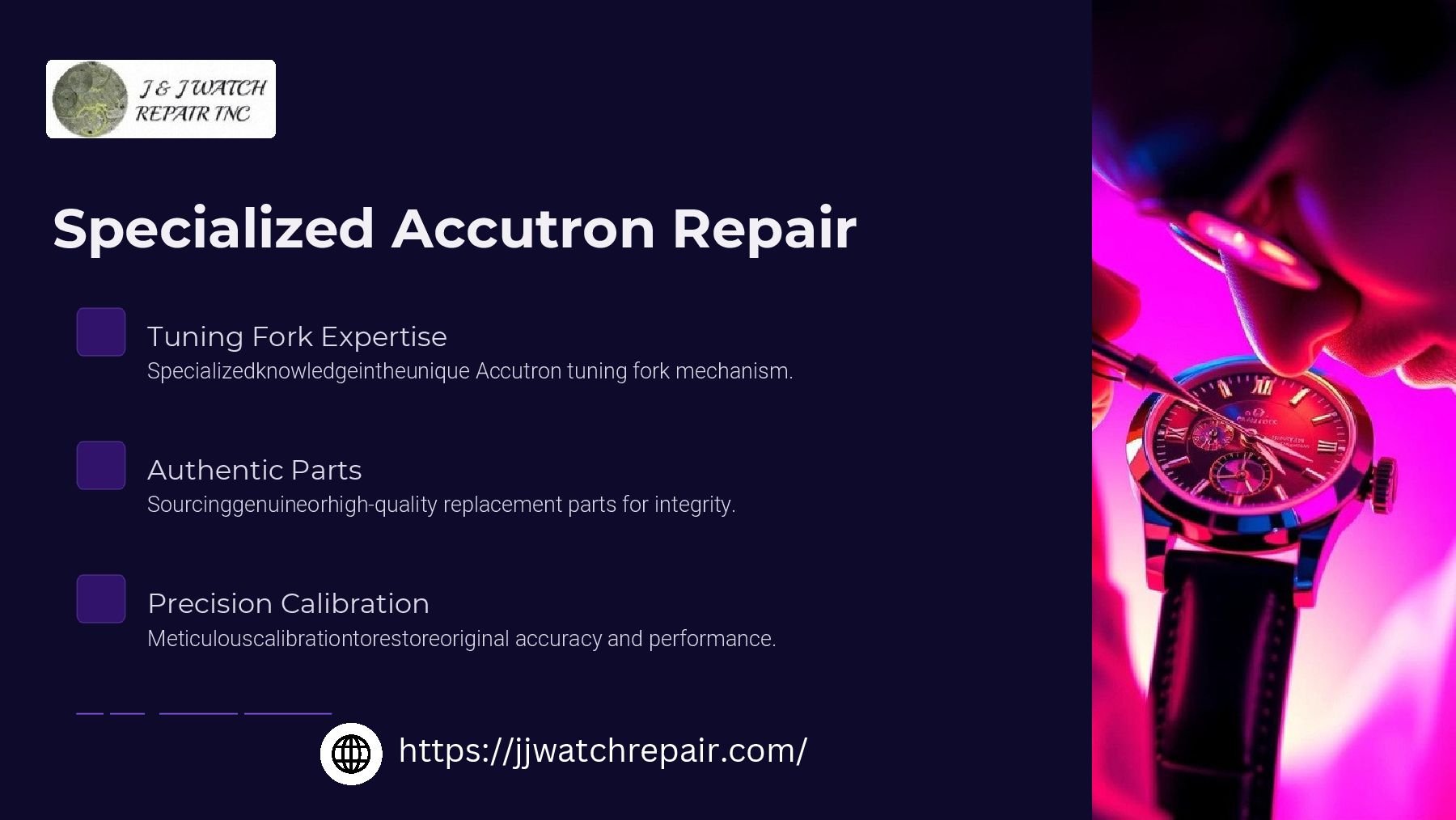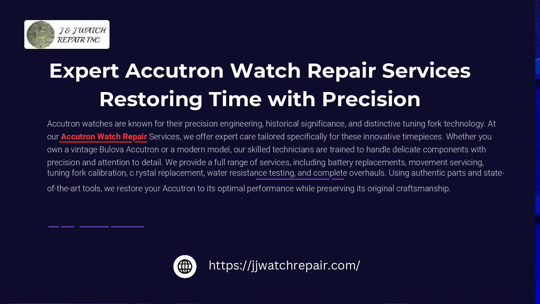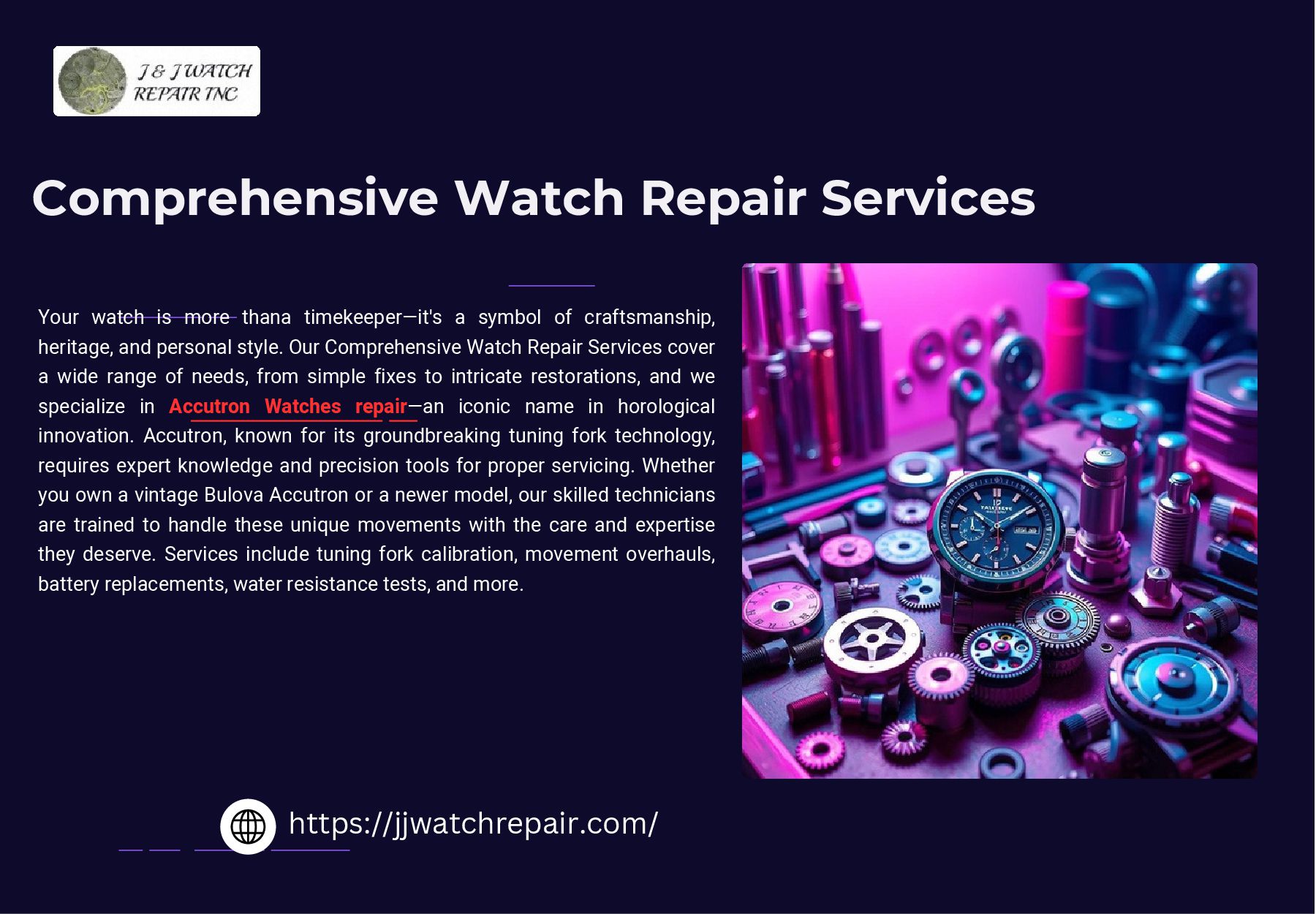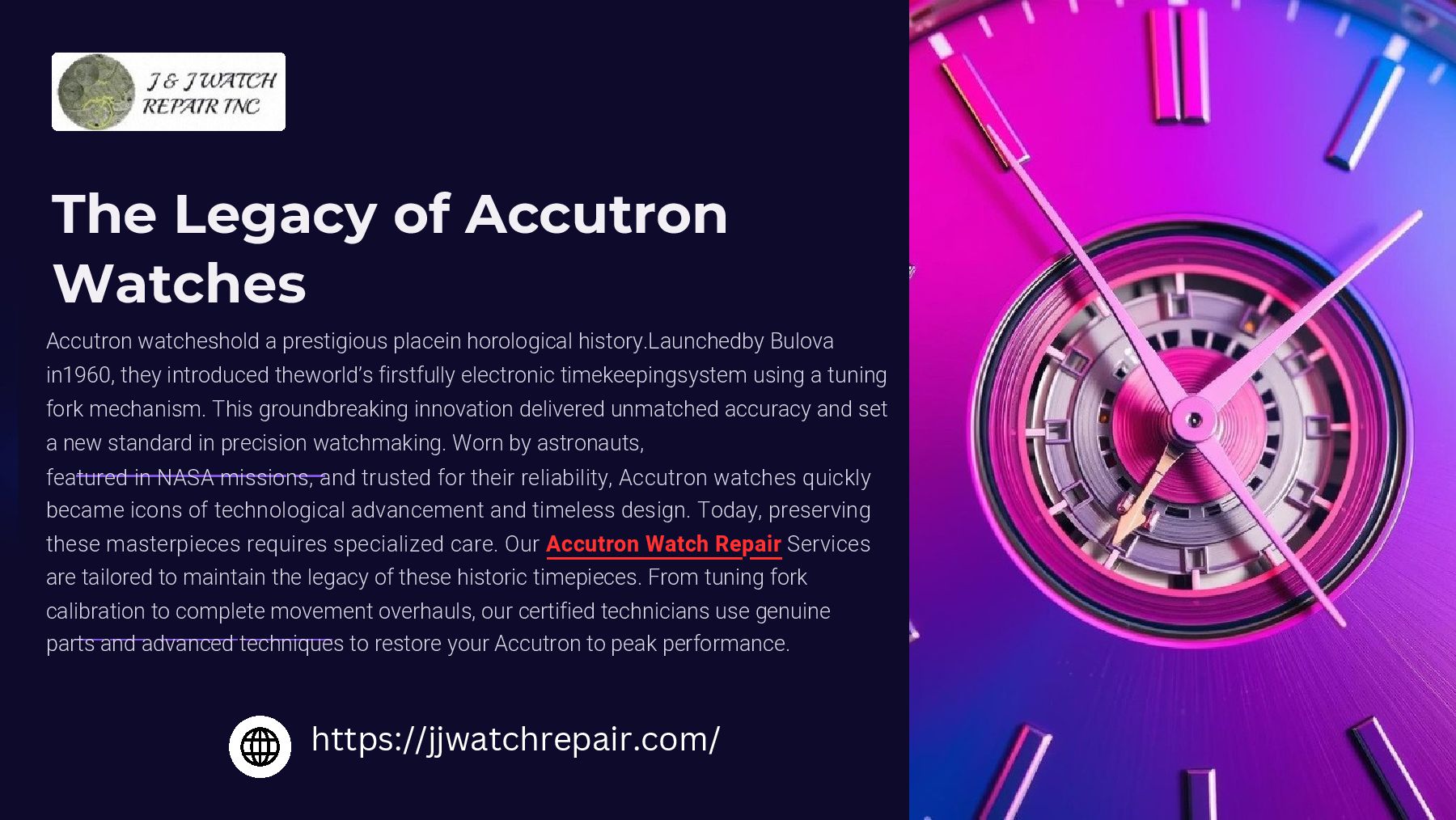 Trust our expert technicians to handle your Accutron watch with unmatched care and skill. From movement adjustments to complete restorations, we ensure your timepiece runs flawlessly and looks as stunning as ever. Preserve the legacy of your Accutron with precision repairs that keep it ticking beautifully for years to come.