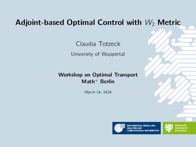Claudia Totzeck (Bergische Universität Wuppertal, Germany) Adjoint-based Optimal Control with Wasserstein-2 Metric