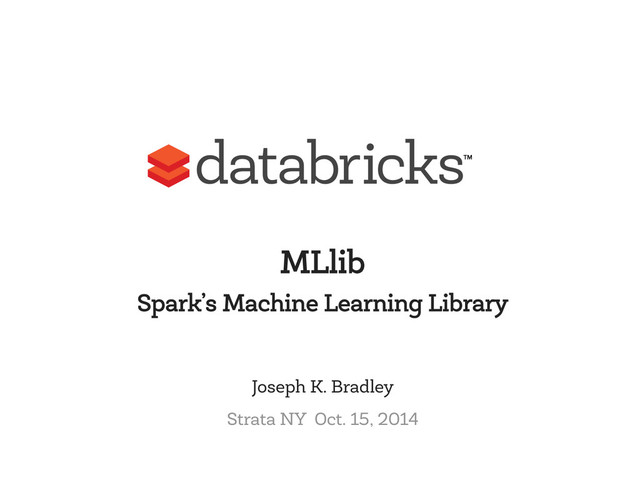 From the Spark Camp at Strata NY 2014, this is the talk on MLlib, Spark's Machine Learning library. It gives a quick overview of the project, upcoming improvements, and links to more resources.