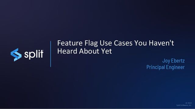 on this topic: https://www.split.io/blog/5-advanced-feature- flag-uses/ • Some ways we use feature flags: https://www.split.io/blog/feature-flags-at-split/ • More about feature flags generally: https://martinfowler.com/articles/feature- toggles.html