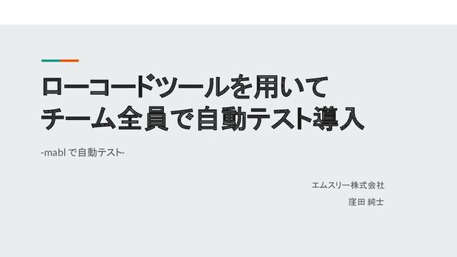 ローコードツールを用いて チーム全員で自動テスト導入 -mabl で自動テスト- エムスリー株式会社 窪田 純士