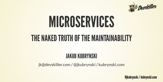@jkubrynski / kubrynski.com MICROSERVICES THE NAKED TRUTH OF THE MAINTAINABILITY