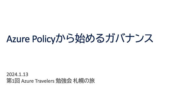 2024.1.13 第1回 Azure Travelers 勉強会 札幌の旅 Azure Policyから始めるガバナンス