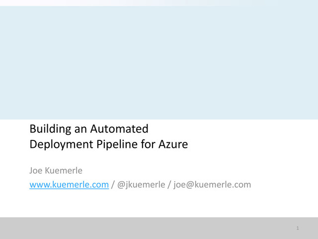 In this talk, we’ll discuss deployment best practices for Cloud Services and how to build an effective deployment pipeline that has multiple environments (some on the cloud, some on your own infrastructure) to ensure that your Azure applications have a reliable, repeatable, and responsible deployment plan.