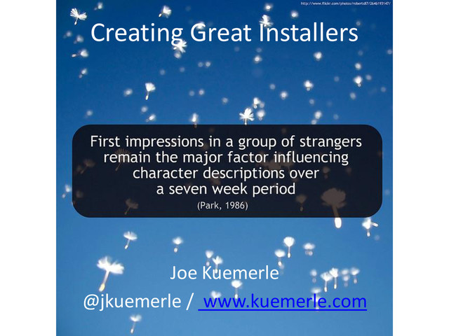 Whether you are creating applications to run on millions of desktops or server side applications that only your network administrators will set up, your most lasting impression will be that of your installation experience. This session will give an overview of the free WiX toolset and how to create and maintain a great installer. We will then dive deeper into the flexibility provided by WiX by integrating it into our build script, perform deep customization of the installation process, ensure correct prerequisites are installed and provision other services like IIS configuration and database deployments. Attend and learn about how to make a great first impression with WiX.