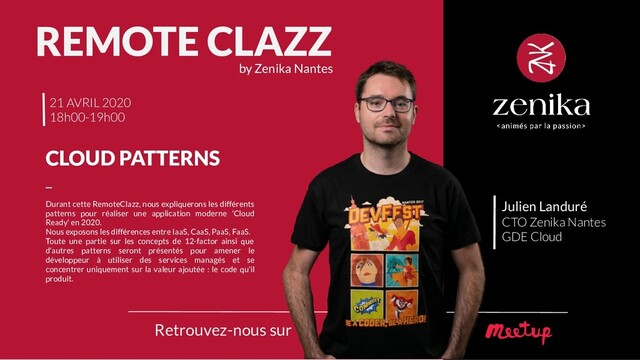 Durant cette présentation, nous expliquerons les différents patterns pour réaliser une application moderne 'Cloud Ready' en 2020.