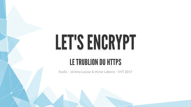 Présentation faite par Jérémy Leocur et Victor Laborie de chez Evolix, à l'occasion de la conférence VVT, le 23 juin 2017.