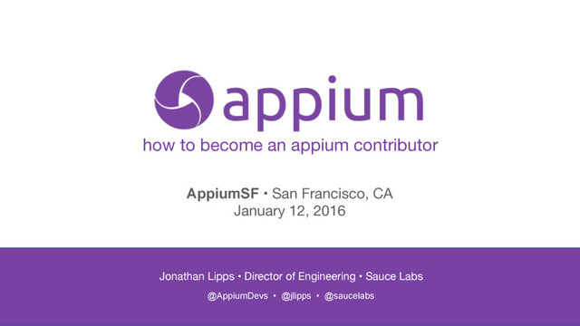 An introduction to the Appium project from a development perspective: discussion about our recent code rearchitecture, an overview of our codebase, and a step-by-step guide to making changes. Bonus: a brief foray into how we write JS with ES2015 in the Appium project.