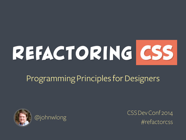 In this talk, John will examine a number of programming principles and demonstrate how they apply within the context of CSS. Principles like: