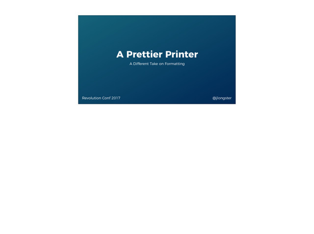 foremost win with this tool is consistency. Not necessarily consistency across the entire JS community, but at least consistency across a company or at least a team. The second win is teachability. Prettier gives a certain tactile feeling to your code, allowing you to actually learn from what it does. The third, and most important, win is freedom. Prettier is about a lot more than just consistency. You just don’t have to worry about how your code looks anymore. This is immensely freeing when writing code, and allows you to focus on the real problem and move around code quickly. There’s an interesting side effect of all of this, which is that if prettier gets used on a majority of projects, we have a chance to allow you, as an individual, to view the code however you want. You can load the code, print it with a custom printer yourself, and you just need to re-print it with the project before committing. You'd be able to always view the code in your own style no matter where it came from. This is why we've relaxed our opinion on options, and prettier comes with several options for major things like semicolons and tabs. You could even write a completely custom printer that prints it in a totally different syntax. For what it's worth, I think there's great value in standardizing on a general format for JavaScript. But the fact is that the JavaScript community is *massive* and I don't think we'll ever converge on a single style for all. It's possible that given the flexibility to view code how you want, the JavaScript stored on the disk becomes an artifact that you don't really care about and we never have to debate about syntax again. The community has been phenomenal and we’ve received so many great contributions….