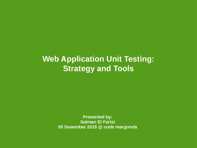 Web Application Unit Testing: Strategy and Tools Presented by: Salman