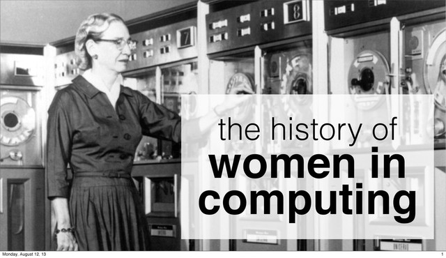 Computer programming was once seen as "women's work." Ada Lovelace, Grace Hopper, Adele Goldberg, and others played pivotal roles in paving the way for today's computing professions. So why then do we see so few women in our community? We'll cover the history of women in computing, possible causes of the gender imbalance, and ideas for how our community can shape a future that includes more women.