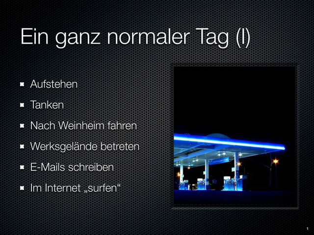 Ein ganz normaler Tag (I) Aufstehen Tanken Nach Weinheim fahren