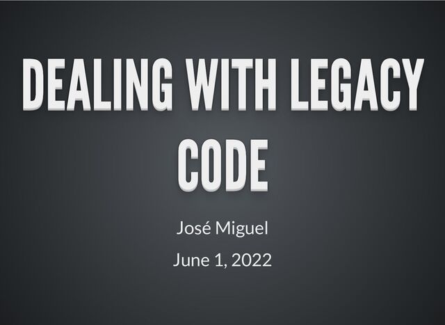 WITH LEGACY DEALING WITH LEGACY DEALING WITH LEGACY DEALING WITH LEGACY DEALING WITH LEGACY DEALING WITH LEGACY DEALING WITH LEGACY DEALING WITH LEGACY DEALING WITH LEGACY CODE CODE CODE CODE CODE CODE CODE CODE CODE CODE CODE CODE José Miguel June 1, 2022
