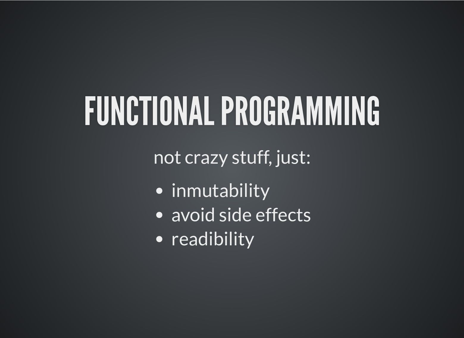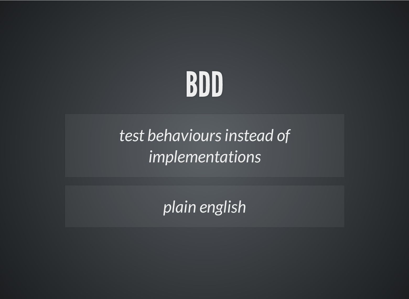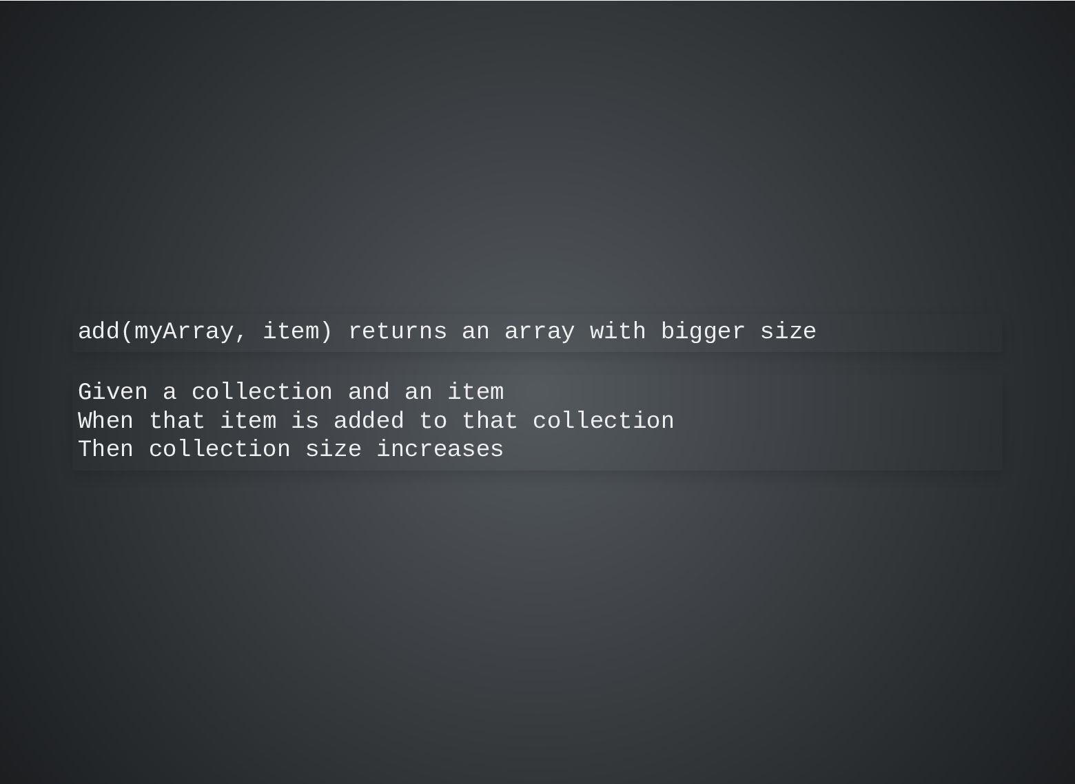 b; } describe('Addition', () => { describe('given two numbers', () => { it('must return the same result independently of their order', () => { expect(suma(2, 3)).toBe(suma(3, 2)); }); }); });