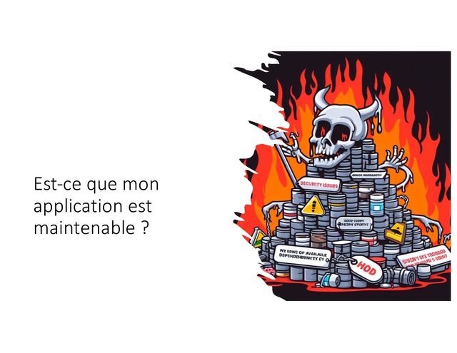 Quand on parle de maintenabilité, on pense souvent au code que l’on a écrit, mais qu’en est-il du code généré ou inclus dans notre application ? On peut penser à nos dépendances externes ou encore au code généré par Copilot. C’est pour cela qu’on va analyser la question sous les deux angles: l’analyse automatique de notre code et l’analyse de ses dépendances externe qui est souvent l’angle mort de notre analyse.