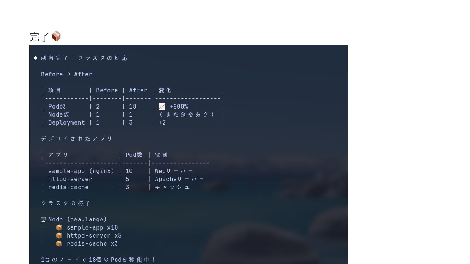 スケールアップしたり、追加でワークロードをデプロイしてくれている