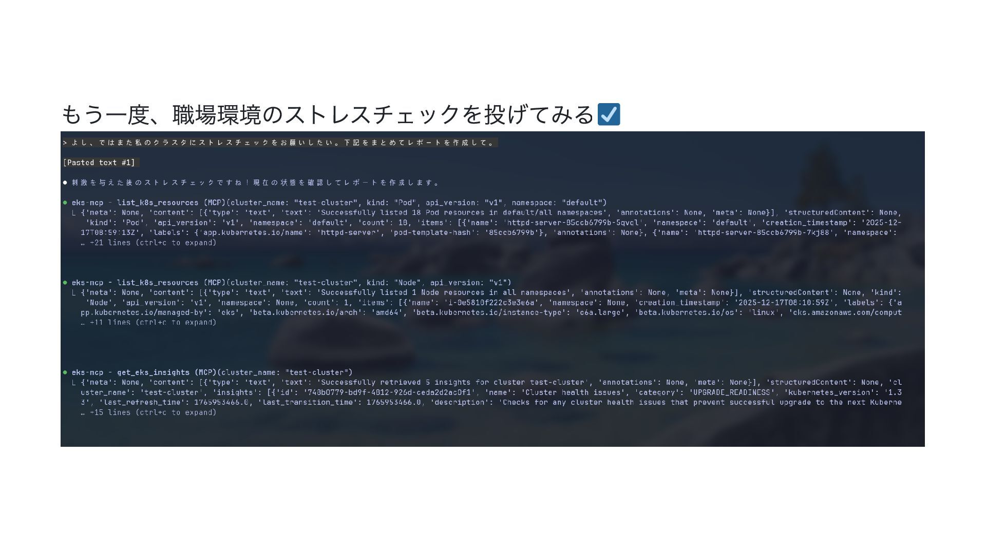 Amazon EKS MCP Serverでクラスタの職場環境のストレスチェックをして遊んでみた