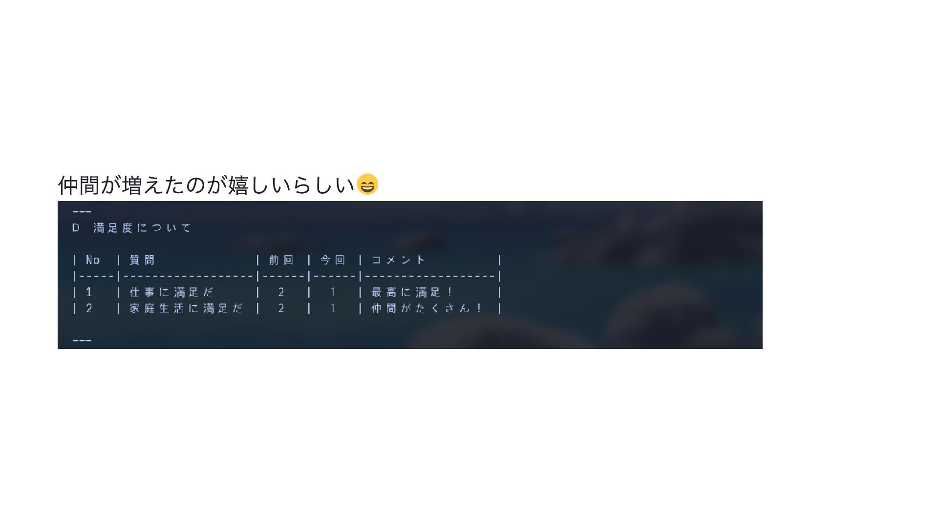 充実した日々を送っているらしい 全く指示してないのに産業医もコメントしてくれている