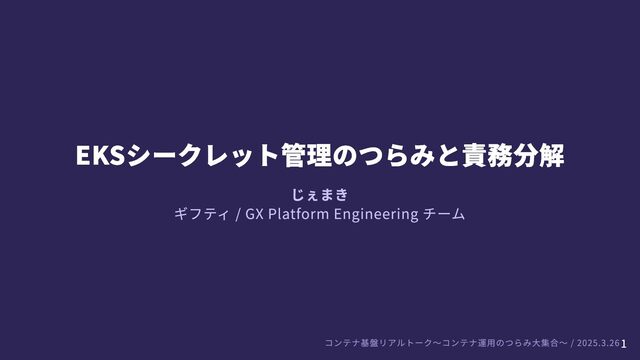 EKSシークレット管理のつらみと責務分解 じぇまき ギフティ / GX Platform Engineering チーム コンテナ基盤リアルトーク〜コンテナ運用のつらみ大集合〜 /