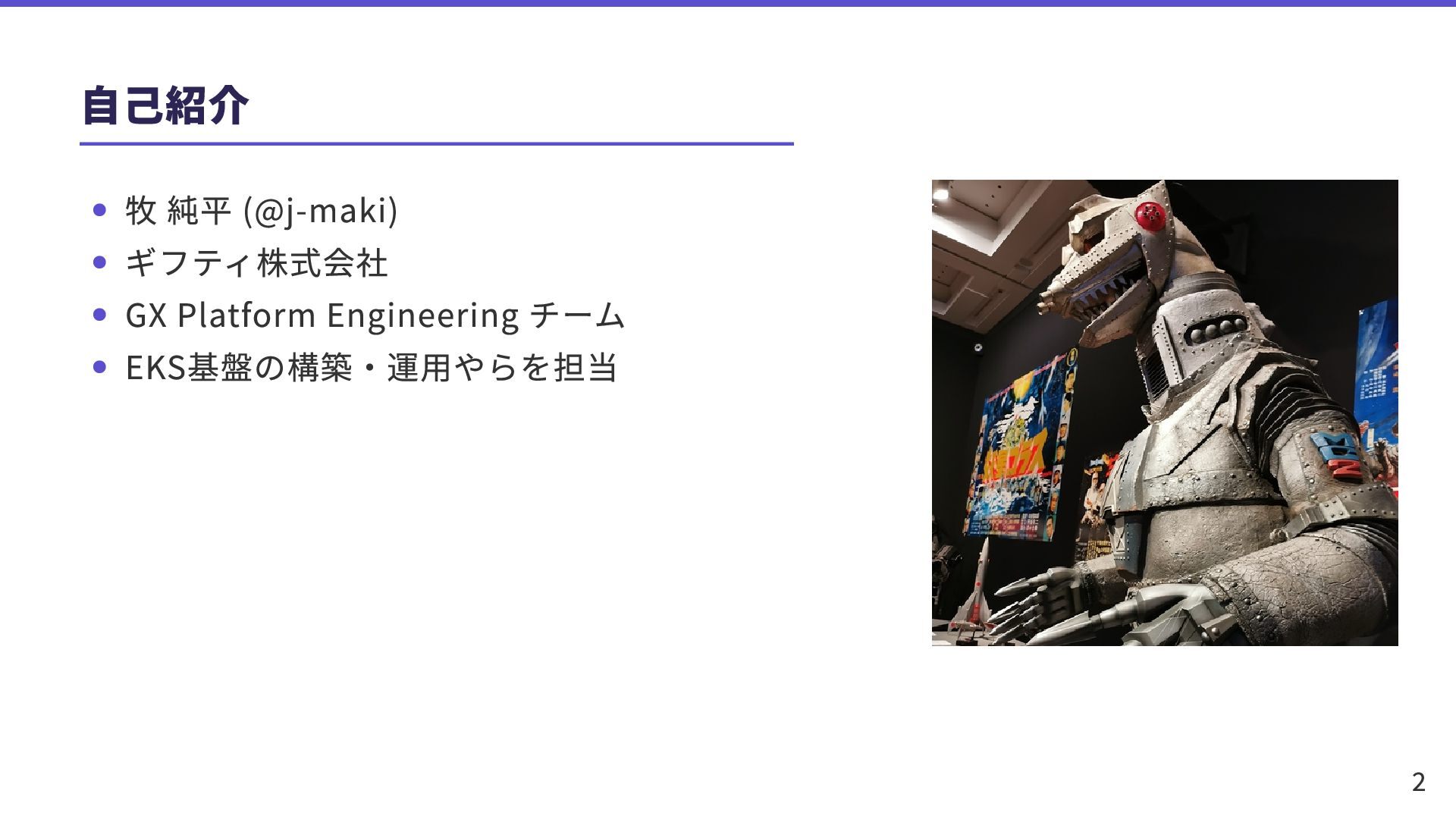 自己紹介 牧 純平 (@j-maki) ギフティ株式会社 GX Platform Engineering チーム EKS基盤の構築・運用やらを担当