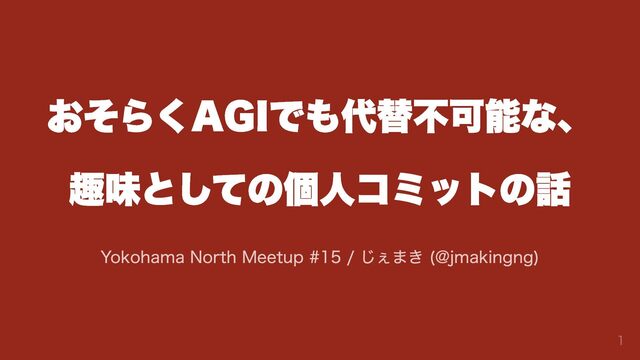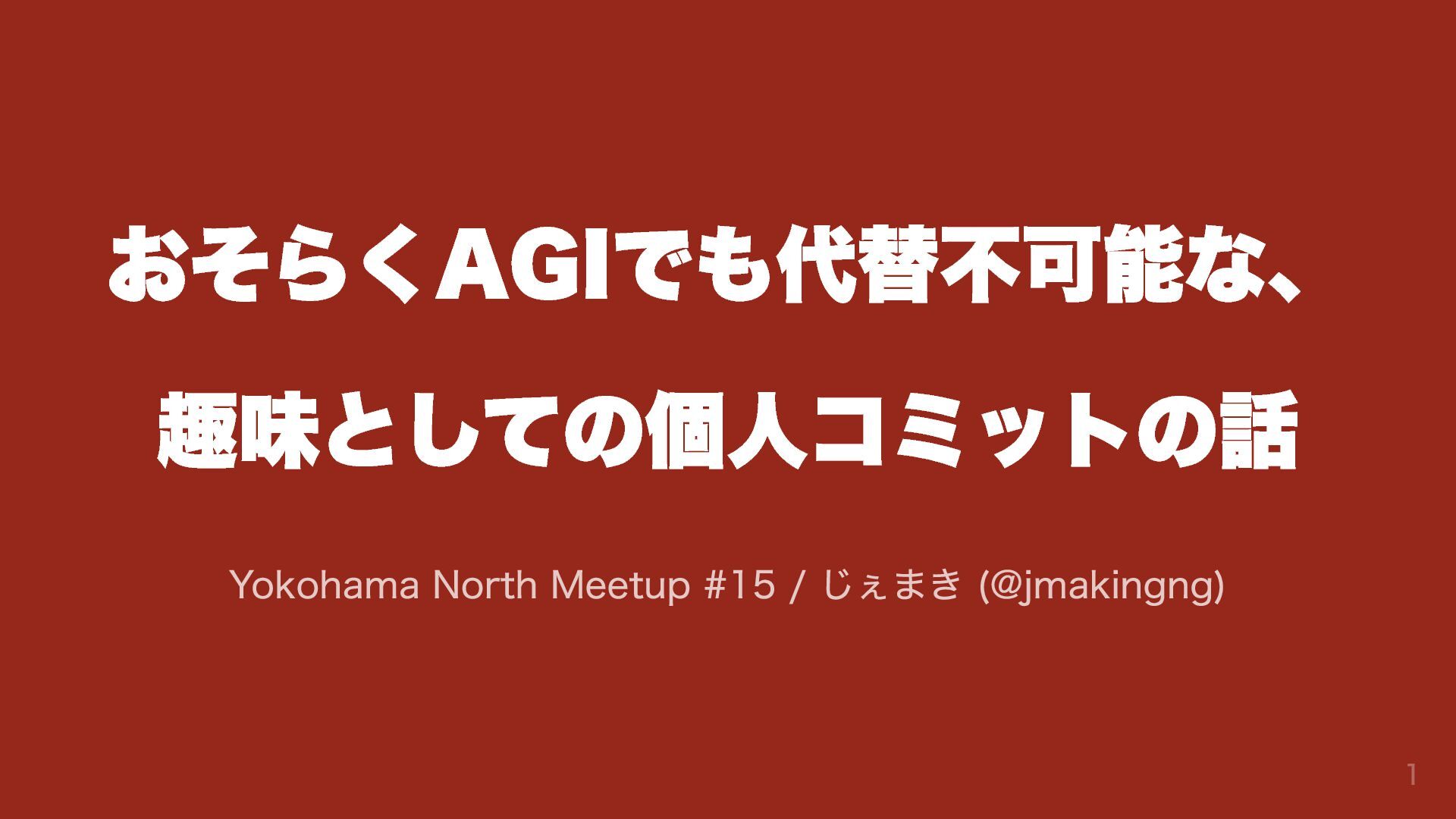 おそらくAGIでも代替不可能な、 趣味としての個人コミットの話 Yokohama North Meetup #15 / じぇまき (@jmakingng) 1