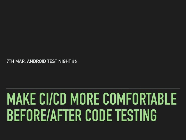 of *comfortable* ▸ Tips to support your testing ▸ How to organize non-fragile CI ▸ Save/load intermediate results of the current/previous build ▸ Get advantages of DeployGate 6