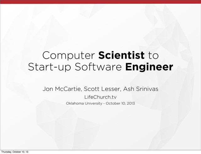 This talk was a team presentation by myself, Scott Lesser, and Ash Srinivas. This deck is my portion of the talk.