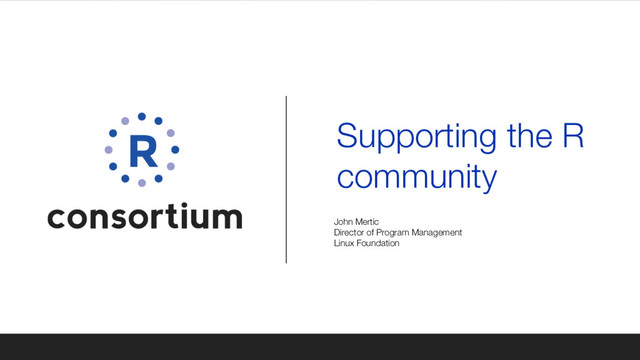 the R Community is critical to long term sustainability. – Packages – User development – Awareness • As a vendor-neutral foundation, R Consortium is a steward for the good of the community.