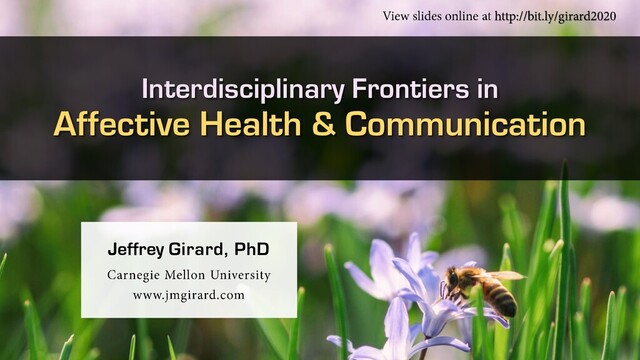 Interdisciplinary Frontiers in Affective Health & Communication Jeffrey Girard, PhD