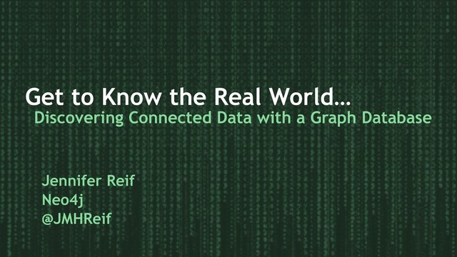 In this session, we will see how a graph database is different from other types of data stores and how it can transform your applications and data. Data science principles and tools can further aid in exploring and understanding complex data to expand possible uses and value.