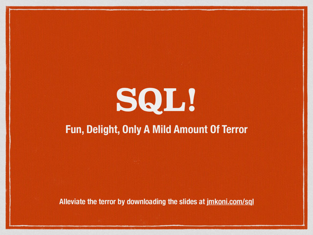 I love SQL and have noticed that a number of junior devs aren't well versed in it and over-rely on the ORM. This tutorial is my attempt to share the love. It takes about 2 hours.