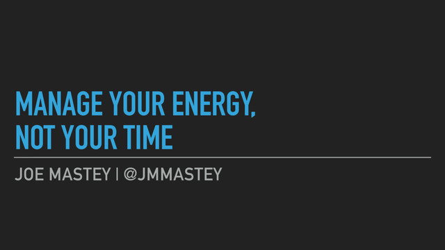 High-tech culture is obsessed with managing time. In fact, if there’s one thing that we spend as much time on as actual work, it’s getting the most out of that work time. But here, like elsewhere, choosing the wrong optimization does more harm than good. Wringing every minute out of your day is more likely to burn you out than to turn you into a code-producing machine. Instead, we need to get better at managing our energy. Put down the kitchen timer, because in this talk you’ll learn about better research-driven approaches to get more out of work and life.