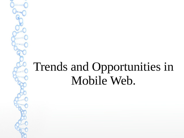 Why is Mobile Web Important. • Trends we saw in 2013. • HTML5. • Libraries / platforms for Mobile web. • Mobile web design patterns. • Tips for building a great mobile web experience. • Discussion.