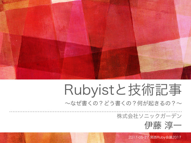 関西Ruby会議2017で「Rubyistと技術記事」という発表をしてきました #kanrk2017 - give IT a try http://blog.jnito.com/entry/2017/05/29/095100