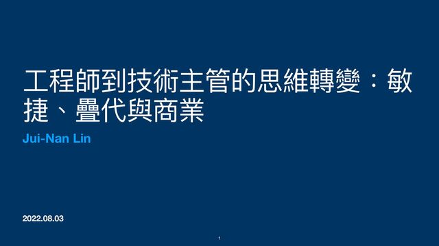 2022.08.03 ⼯程師到技術主管的思維轉變:敏 捷、疊代與商業 Jui-Nan Lin 1