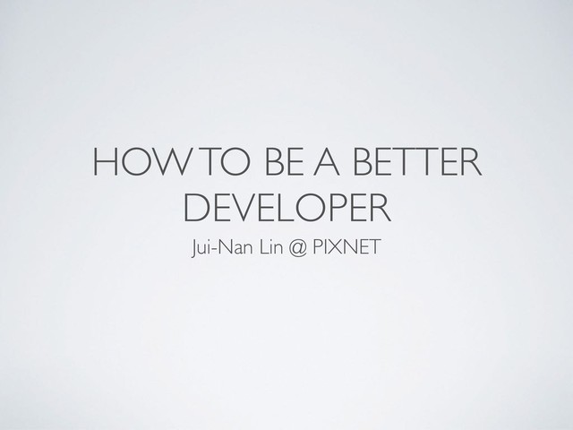 HOW TO BE A BETTER DEVELOPER Jui-Nan Lin @ PIXNET