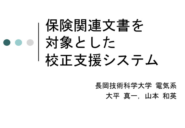 保険関連文書を 対象とした 校正支援システム 長岡技術科学大学 電気系 大平 真一,山本 和英