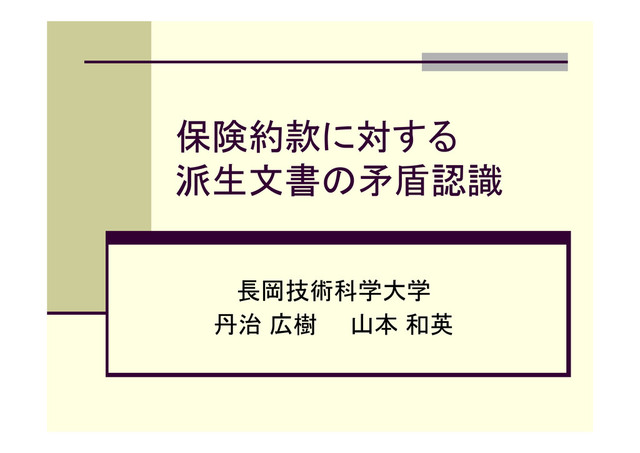 保険約款に対する 派生文書の矛盾認識 長岡技術科学大学 丹治 広樹 山本 和英