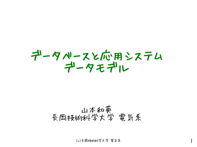 (c)長岡技術科学大学 電気系 1 データベースと応用システム データモデル 山本和英 長岡技術科学大学 電気系