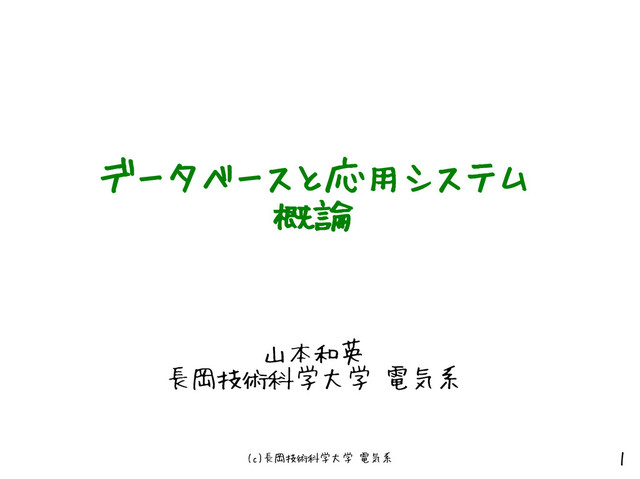 (c)長岡技術科学大学 電気系 1 データベースと応用システム 概論 山本和英 長岡技術科学大学 電気系