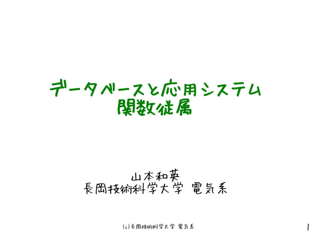 (c)長岡技術科学大学 電気系 1 データベースと応用システム 関数従属 山本和英 長岡技術科学大学 電気系