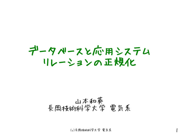 店舗名 店舗 住所 売 上 日 商品 コー ド 商品 名 単価 数 量 小計 合計 消 費 税 請求 額 担 当 者 I D 担当者 氏名 1 2 長岡 長岡 市... 3/5 M1 マウス 100 3 300 3900 50 3950 3 佐藤 1 2 長岡 長岡 市... 3/5 C2 HDD 500 6 3000 3900 50 3950 3 佐藤 1 2 長岡 長岡 市... 3/5 K4 キー ボード 300 2 600 3900 50 3950 3 佐藤 2 1 新潟 新潟 市... 3/6 M2 マウス 200 1 200 1100 30 1130 2 小林 2 1 新潟 新潟 市... 3/6 U7 USBメ モリ 300 3 900 1100 30 1130 2 小林 3 2 長岡 長岡 市... 3/6 L3 無線 LAN 200 1 200 400 10 410 3 佐藤 3 2 長岡 長岡 市... 3/6 M1 マウス 100 2 200 400 10 410 3 佐藤 第1正規形