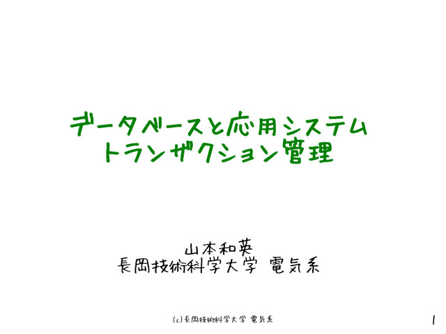 (c)長岡技術科学大学 電気系 1 データベースと応用システム トランザクション管理 山本和英 長岡技術科学大学 電気系
