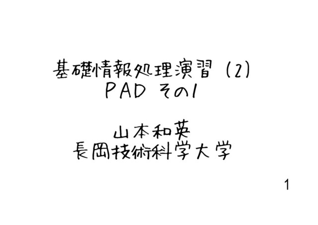 基礎情報処理演習 (2) PAD その1 山本和英 長岡技術科学大学 1